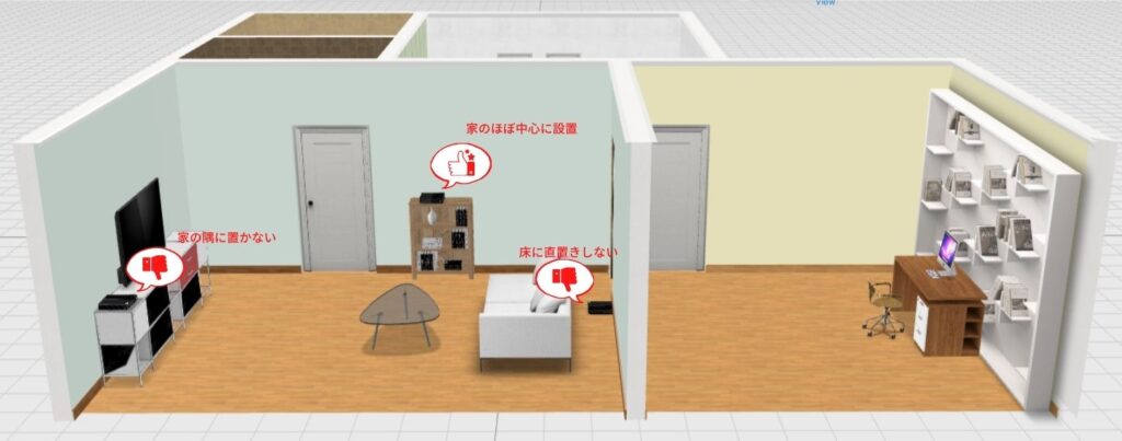 家全体をカバーしたい場合はなるべく家の中心に置くようにします。